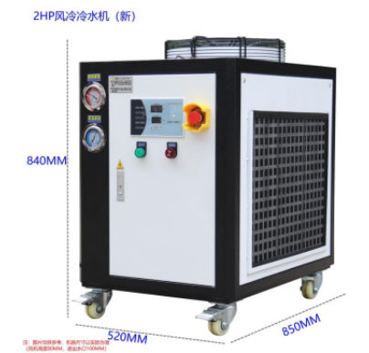 風冷式工業冷水機簡介; 又稱為風冷箱型工業冷水機,是一種針對多種不同行業的設備,將設備通過冷卻形式來達到降溫目的的一種設備。其廣泛用于醫療、化工、激光、冶金、設備制造、電鍍、塑料加工行業。由于其換熱的來源是空氣,配備的有專用風扇,故稱為“風冷式”。